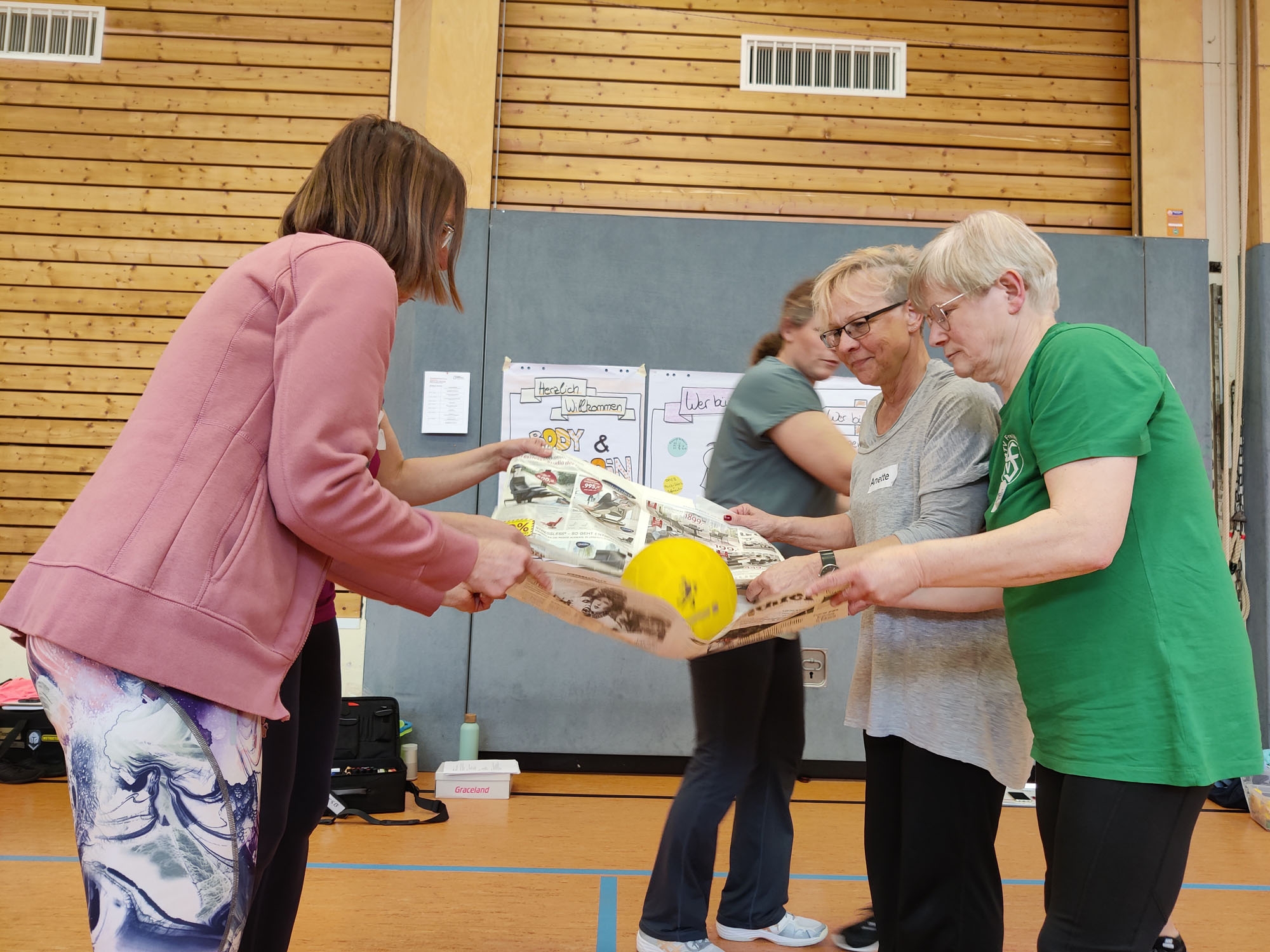 - Spielerische Elemente und koordinative Übungen ohne und mit Materialien